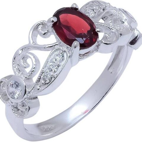 Garnet , White Topaz Natural Gemstone 925 Sterling Silv