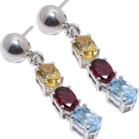 Garnet, Citrine, Blue Topaz Gemstone 925 Sterling Silve
