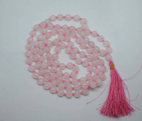 KSJ Real Rose Quartz Crystal Stone Certified Mala|8mm-1