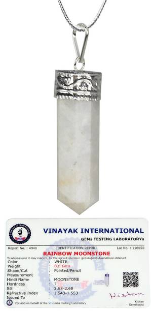 Natural Certified Rainbow Moonstone Pencil Pendnat Crys